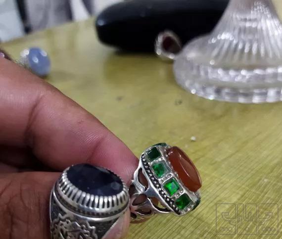 انگشتر عقیق یمن ویاقوت کبود وعقیق خط امضا دار