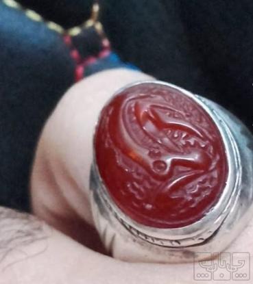 انگشتر عقیق یمنی رکاب دوقاب استاد جمالی فوق کهنه فابریک بکر بکر ذکر یا مهدی خط قلم برجسته
