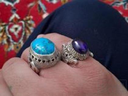 با سلام دوتا انگشتر نقره دورشت دست ساز زیبا فیروزه و یاقوت کبود