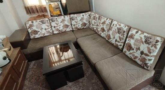 مبلمان ال هفت نفره با زدگی جزیی روی دسته مبل که در عکس مشخصه با میز جلو مبلی صحیح و سالم