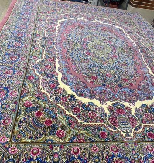 بااحترام دوتخته فرش دستباف ٩ متری صدجفت واقعی سلسله دار گره دار کرک و پشم با الیاف نانو طرح و نقش و بافت نایاب بافته شده توسط اساتید فرش ایران