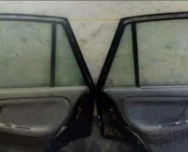 درب عقب سیلوچپ وراست رنگ فابریک مشکی با همه متعلقات آماده نصب با رودری و شیشه و قفل و دستگیره و....... هر2 درب مشکی رنگ فابریک با همه متعلقات آماده نصب
