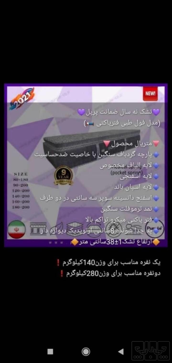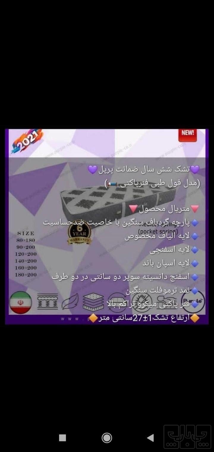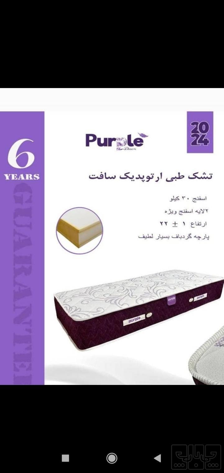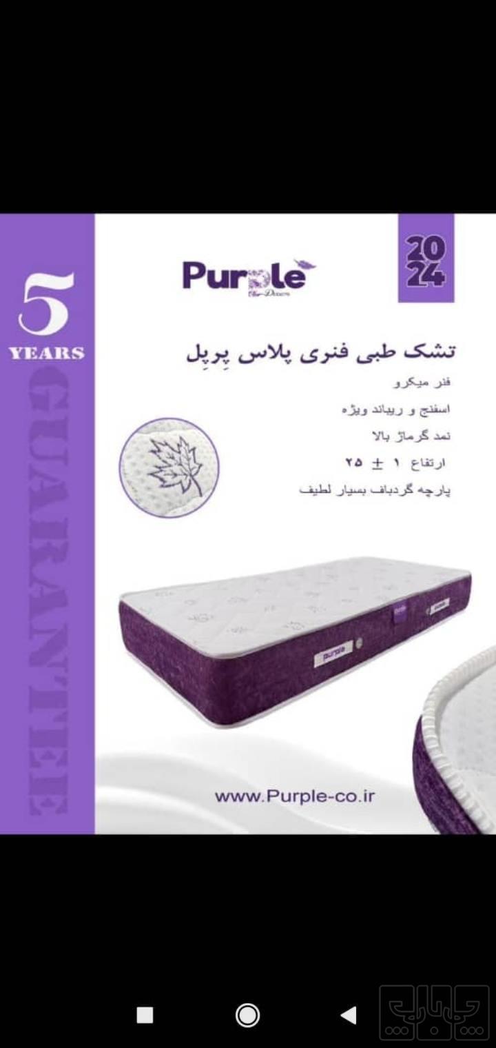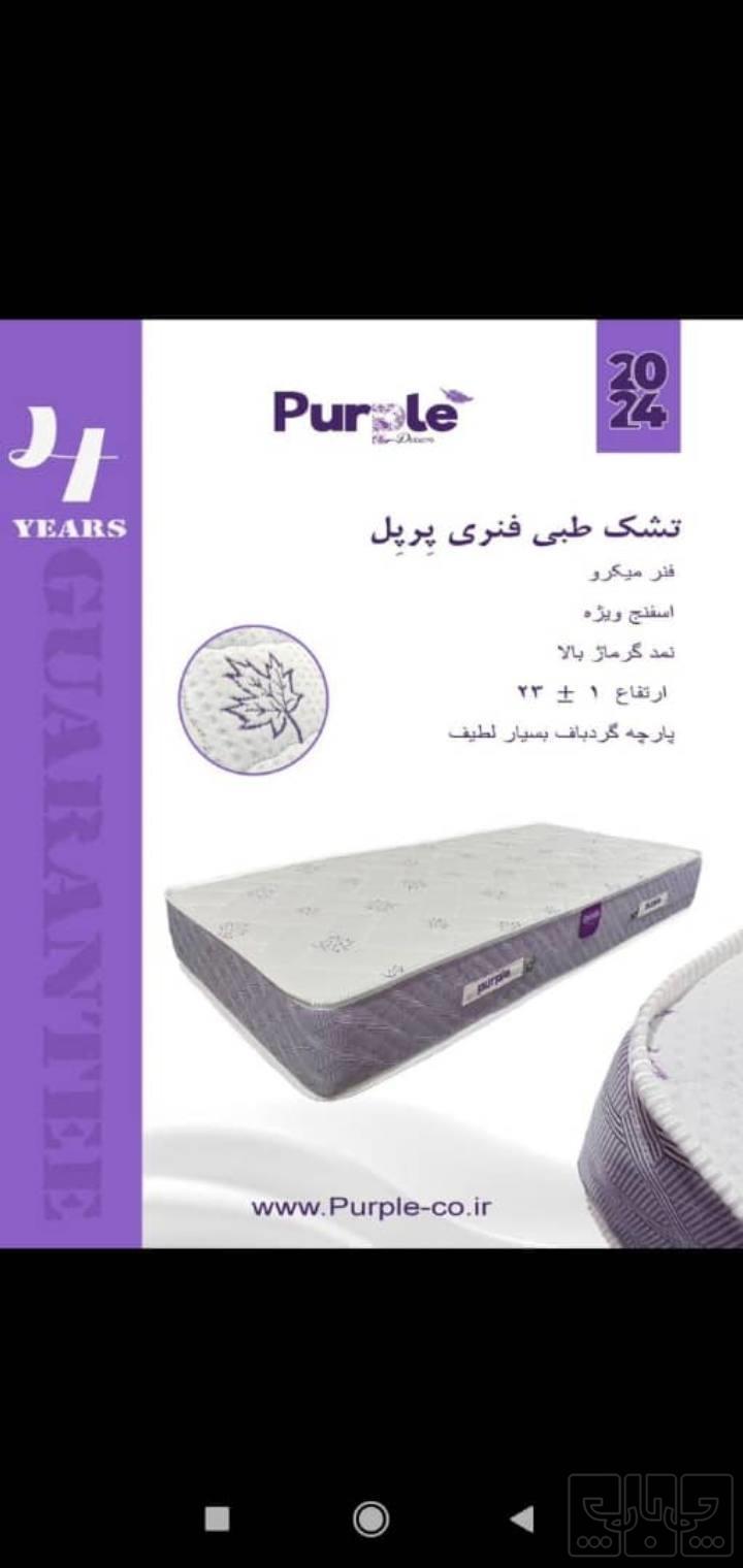 با سلام خدمت دوستان عزیز انواع کالای خواب و تشک های برند پرپل فنر میکرو. فنر پاکتی. تمام طبی و تشک های هوشمند (مموری فوم دار). محل انبار اجناس در تهران و کرج هست ولی ارسال به تمام نقاط ایران به صورت توافقی لازم به ذکر است تمامی اجناس به قیمت کارخانه و طبق لیست قیمت رسمی کارخانه است و کاملا قابل استعلام. با بیش از ده نمایندگی فعال در سراسر ایران ..