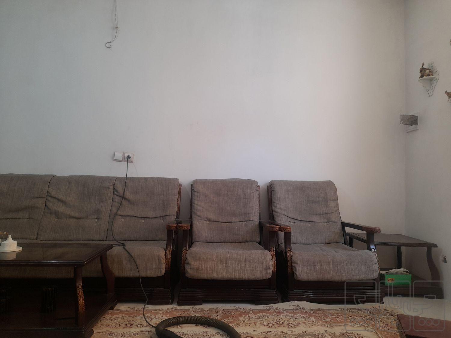 یک دست مبل ۷ نفره چوب محکم بدون پارگی و شکستگی همراه میز وسط و یک عدد عسلی