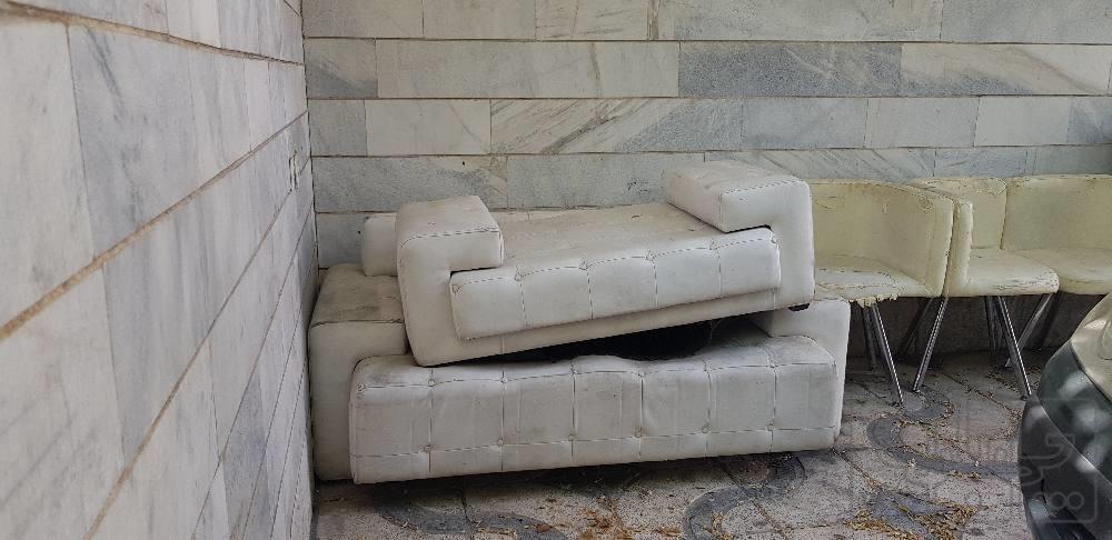 مبل مدرن ۸ نفره چرم و استیل راحت ایران کم کارکرد . مناسب . منزل . بنگاه املاک . آرایشگاه و ...