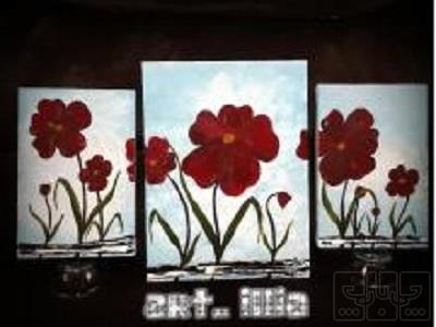 تابلوی دکوراتیو سه تیکه رنگ و روغن دیزاینی زیبا برا منزل شما زمینه طرح دار میباشد که در عکس مشخص نیست سایز 40در 80 استفاده شده از رنگهای وینذور