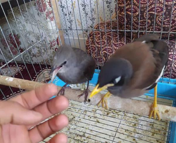یک عدد مرغ مینا جوجه ۳ماه نشده دوتا ساربرنجی جوجه نوک زرد