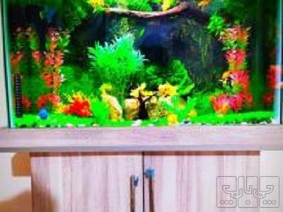 یک عدد اکواریوم کامل و بی نقص استفاده از بهترین ها دارای لوازم: فیلتر قوی و حرفه ای (دارای سرامیک و سه لایه پد) آب رو مث شیشه شفاف میکنه(کریستال واتر)_ نور قوی_فیلتر کف_دماسنج_پک پد کامل لوازم دکوری: سه چهار عدد چمن مصنوعی سایز بزرگ_ چهار عدد گیاه بزرگ بک گراند دو طرفه با کیفیت_چوب آبنوس بزرگ_چهار عدد گیاه کوچک_یک چوب آبنوس متوسط_سه عدد سنگ دراگون_دو عدد چوب آبنوس کوچک_مقدار زیادی سنگ مختلف برای کف اکواریوم