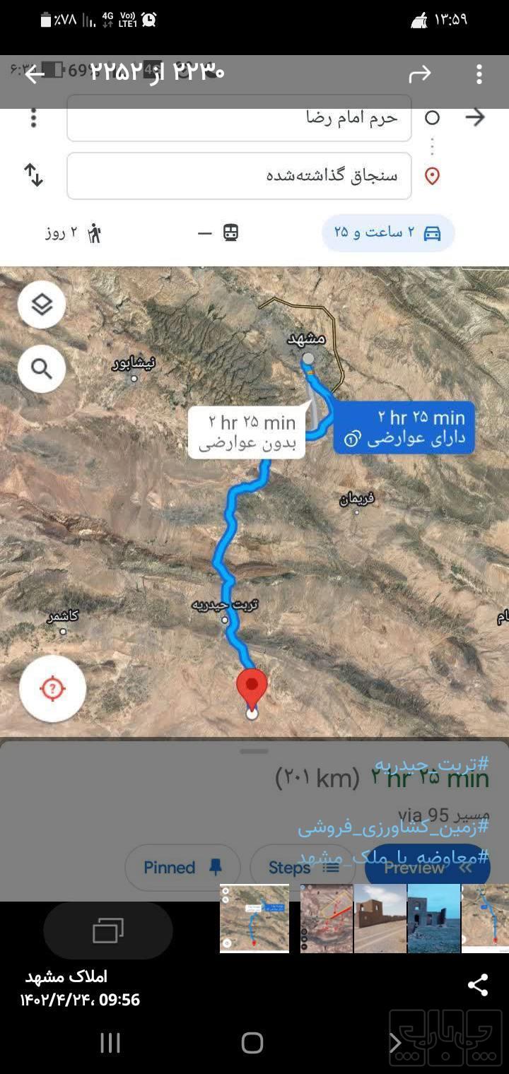 زمین ۳۶ هکتار بر جاده اسفالت گاز و برق و اب خوراکی پای ملک سند تک برگ ۶ دانگ عرصه و اعیان ملکی تربت حیدریه جنوب خراسان رضوی داخل گوگل سرچ کنید روستا شعبه