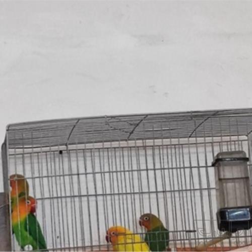 سلام یه جفت کوتوله ضمانتی به شرط تخم و جوجه نر سبز صورت هلویی ماده فیشر طلایی به همراه3 عدد جوجه دونخور سبز صورت هلویی