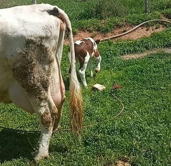 گاو و گوساله وزن گاو ۶۰۰کیلو چهار روز زایمان کرده روزی ۲۵ کیلو شیر پرچرب دارد به شرط