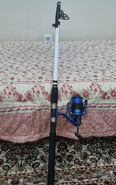 قلاب ماهیگیری مازویی(لنسر) ۳ متری چرخ ۶۰۰۰مازویی نخ ماهیگیری کیف ماهیگیری با دو جای چوب قلاب سایز ۱۱ سیم بکسل تک قلاب زنگوله