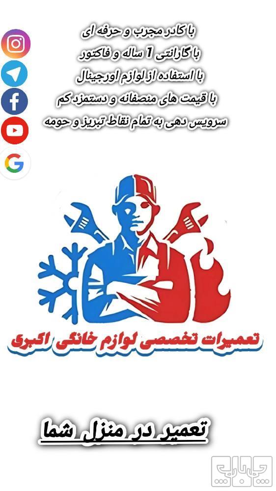 { تعمیرات تخصصی لباسشویی وظرفشویی اکبری } 《 تعمیر در منزل شما 》 تعمیرات تخصصی《 لباسشویی و ظرفشویی و ماکروفرو...》 در تمامی برند ها (بوش)(الجی )(سامسونگ)(اسنوا)(کندی)(هایر)(دوو)(زیروات)(بکو)(زیروات)(ایندزیت) (مرسی)و... (تعمیر با قیمت های منصفانه) ( باگارانتی1ساله وفاکتور ) (بالوازم اورجینالودرجه1) ( باتکنسین های دوره دیده) (باداشتن چندین سال سابقه درخشان ) 《سرویس دهی به تمام نقاط تبریز و سهند _اندیشه _باسمنج _ سردرود _ کندرود _اسکو _ ایلخچی _..》 (چنانچه در منزل شما تعمیر نشد وبه کارگاه انتقال داده شد هزینه وانت بار به عهده ماست)