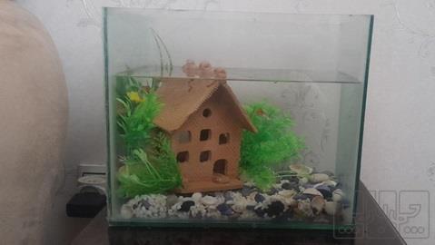 آکواریوم کوچک کاملا سالم و زیبا با پمپ آب و کلبه و زیبایی