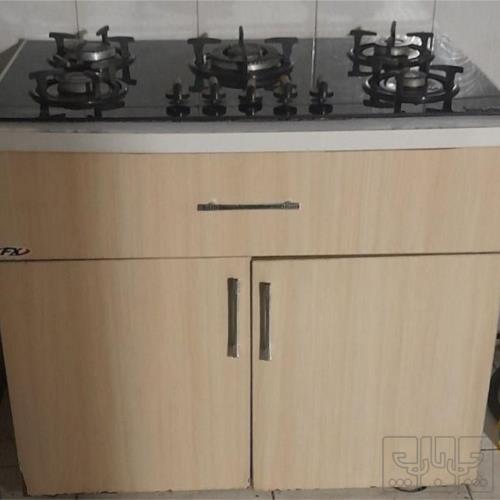 سلام اجاق گاز صفحه ای در حد نو با کابینت زیرش و یه کشو زیر برا وسیله های آشپزخانه