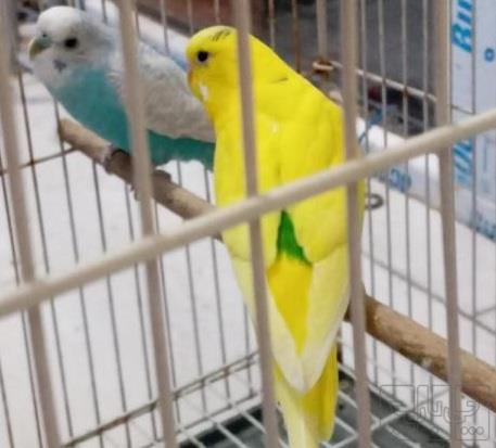 یک جفت مرغ عشق خوشگل به رنگ آبی و زرد خوشرنگ.