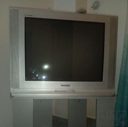 تلویزیون دارای کنترل و میز تی وی هم هست