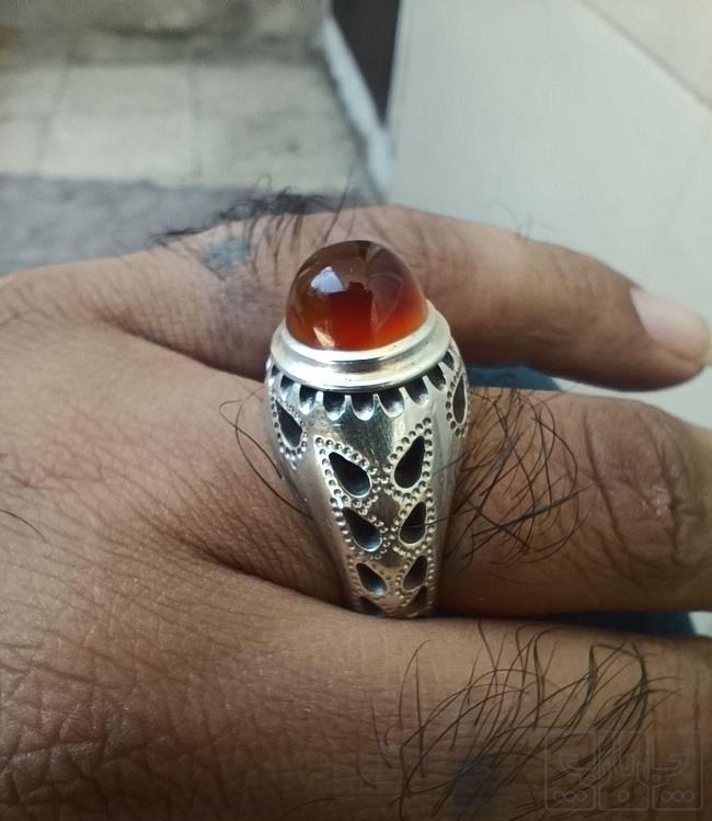 یک عدد انگشتر تمام شبکه استاد جواد احمدی سنگ عقیق پرتقالی سر تا کف تیغ آب خوش رنگ و لعاب وزن ۲۲گرم سایز ۶۳ قرص و جوندار خوش دست