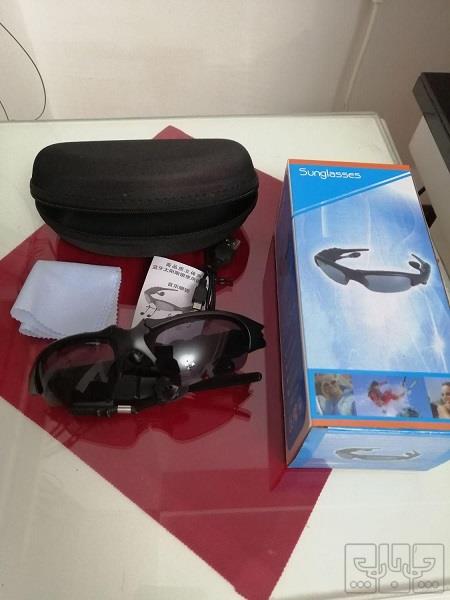 عینک دودی هندزفری دار جعبه و دستمال و کیف داره استفاده نشده اصلا