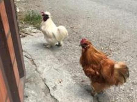 دو تا خروس زینتی زیبا سفید. حنایی