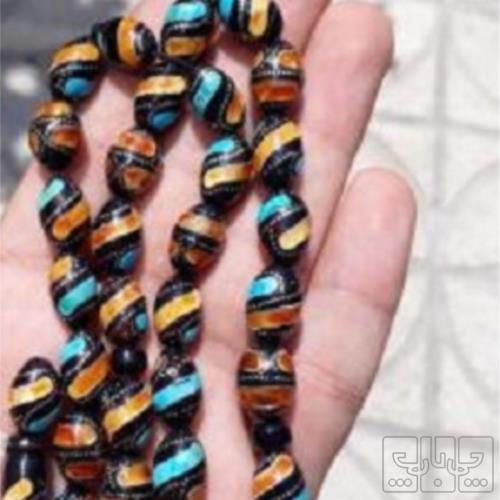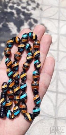 تسبیح یسر کهنه نقره کوب فیروزه کوب کهربا کوب مرجان کوب