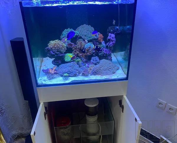 ابعد اکواریوم ٦٠ در ٦٠ ارتفاع ٥٠ سیستم نور قاب مهتابى اودیسه همراه ٤ عدد مهتابى Ati واتر پمپ پریها کنترلر ٥ هزار،موجساز کنترلر w10،فیلتر ساکس بابل مگاس،راکتور ٢کاره ایران اکواریوا،اسکیمر ماکرو اکوا،ماهیا بلوتانک،جراح قهوه اى، جفت دلقک مولد بلک فتون مخملى،راس زرد راس ٦ خط،کاردینال پیجاما،گابى شن خوار،کلى ستاره شن الک کن و شکستنى و خیار و هرمیت و حلزون،تعداد بسیار زیادى مرجان خارجى و خلیجى