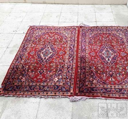 جفت فرش دست بافت یک در یک و نیم طرح نقشه اردکان رنگ لاکی