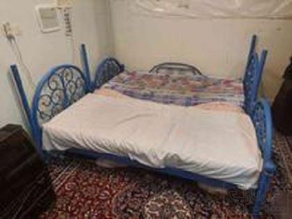 دو عدد تخت یک نفره فرفوژه قابلیت تبدیل به تخت دو طبقه همراه با نردبام و تشک های نسبتا قابل استفاده کفی فلزی کاملا سالم رنگ الکترواستاتیک کاملا سالم