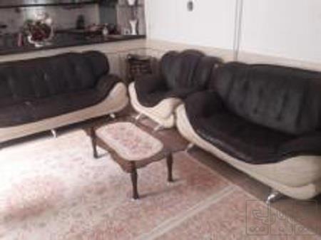 مبل راحتی چرم با 3عدد میز عسلی وجلو مبلی