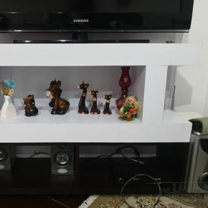 تلویزیون، دو عدد میز تلویزیون و دوچرخه
