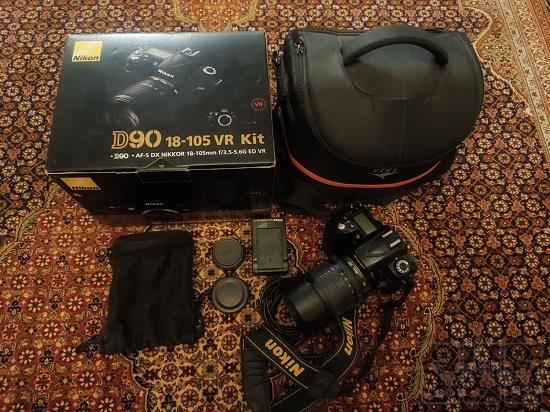 دوربین عکاسی NIKON D90 کاملا سالم کلیه قطعات اصل همراهش هست از بند تا کاور لنز باتری هم کاملا سالم هست با قابلیت نگهداری شارژ برای مدت طولانی + جعبه سالم + کیف حمل دوربین مدل: Nikon D90 Kit AF-S 18-105mm VR