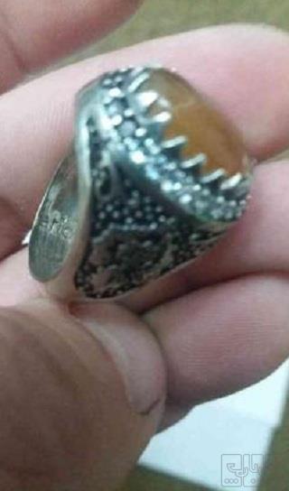 عقیق سلیمانی نقره.رکاب قلمکاری.دوره نگین سنگهای ریز سفید کار شده