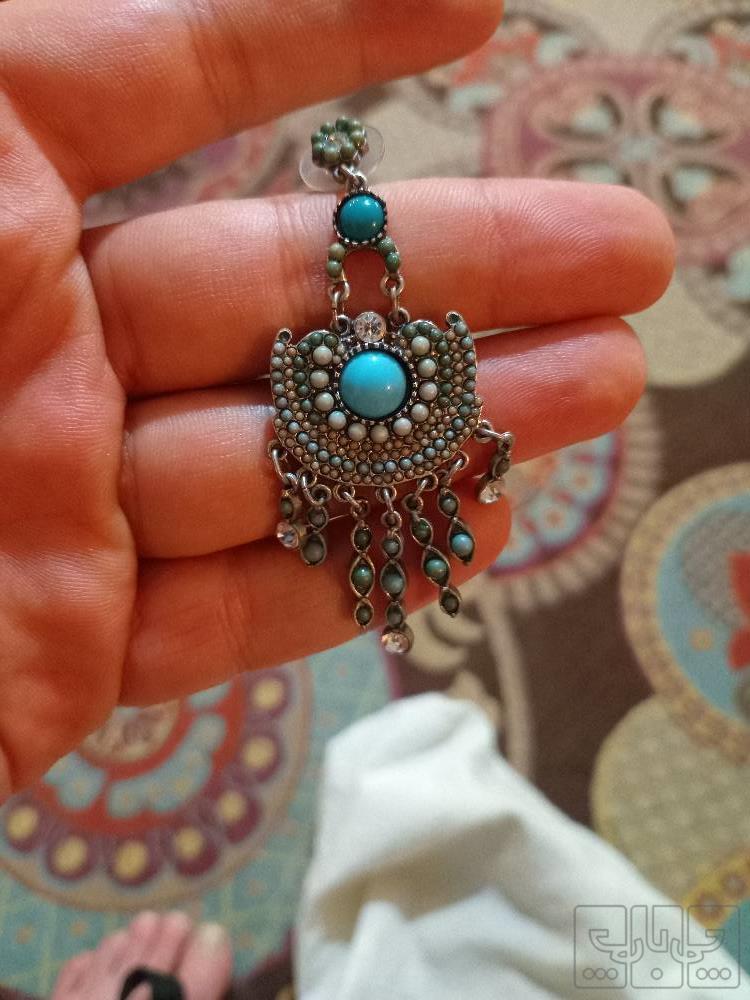 گوشواره نقره دستساز مخراجکاری شده با فیروزه