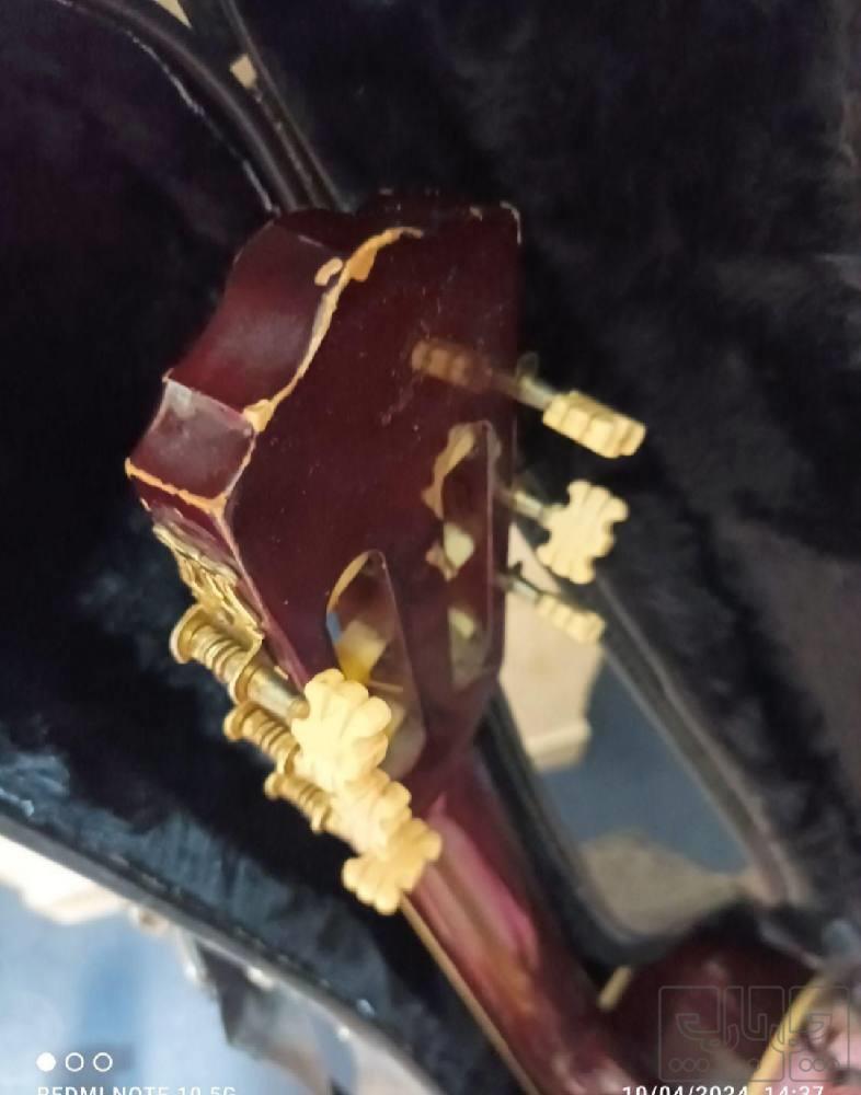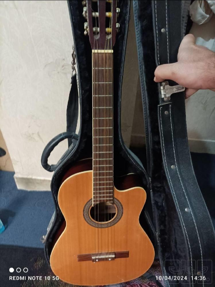 گیتار دست ساز برند ALHAMRAH. دست ساز. کیفیت عالی. یک سیم ندارم. تا آخرین پرده بدون گز میزنه. رنگ دسته ثابت و رزوود. خرک استخوانی. سایز عالی. کمی زدگی در رنگ داره. هارد کیس عالی و مقاوم.