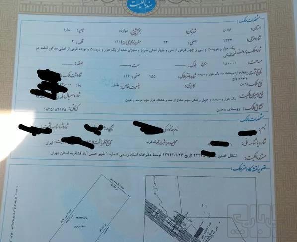 زمین مسکونی1346مترتک برگ سند بحراتوبان روبه روی زندان تهران بزرگ.اول جاده حسن ابادچرمشهر فاصله تاجاده۲۰متر امکان تاسیس کارگاه شرکت سوله پمپ گاز... زمین بغلی درحال ساخت میباشد نزدیک شهرک صنعتی ری وشرکت بیجین. دارای چاه اب مشاع بهترین گزینه برای سرمایه گذاری من چون شهرستانم میفروشم باتوجه به احداث آزاد راه غدیرارزش زمین روبه بالاس
