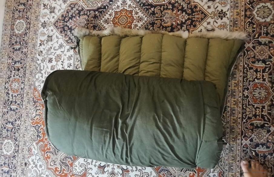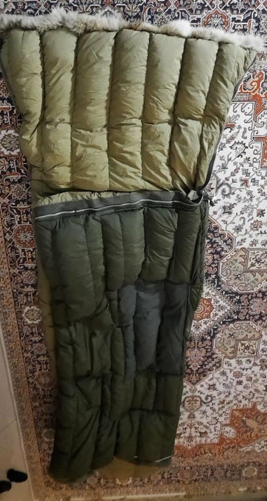 سلام دوستان کیسه خواب پر قو دونفره اندازه ۲۲۰ در ۱۲۰ میشه کلا بازش کرد به عنوان زیر انداز بالای کیسه خز طبیعی ضد آب دونفر میتونن تو کیسه بخوابن به شرط میدم تمیز کاملا بهداشتی بدون کوچکترین زدگی