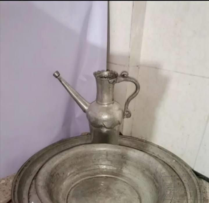 سینی مسی 70سانت. تشت رخت شور مسی 45سانت در عمق 10سانت قابلمه 20در 20سانت عمق ماهیتابه 30سانت در5سانت عمق آفتابه 3کیلو کفگیر کوچک نیم کیلو که200سال قدمت داره میدم 300 تومان همگی 12کیلو هستند سنگین وزن ضخیم و کار دست هستند همگی کیلویی 300000تومان بشقاب گل سرخی هرکدام20تومان.12عدده دیس ها 40تومان هر کدام. 3عدده قهوه خوری یک دست کامل با پایه 100تومان