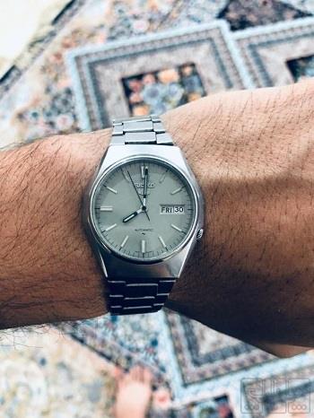با سلام سیکو ۵ اصلی که نبضی هست و اتوماتیک کار میکنه فیکش خیلی زیاده این اصلیه و ۲۰ ساله که دارمش تقویم دار بند ها فابریکه و سریال ساعت و بند یکیه همه چی سالم و بدون تعمیر