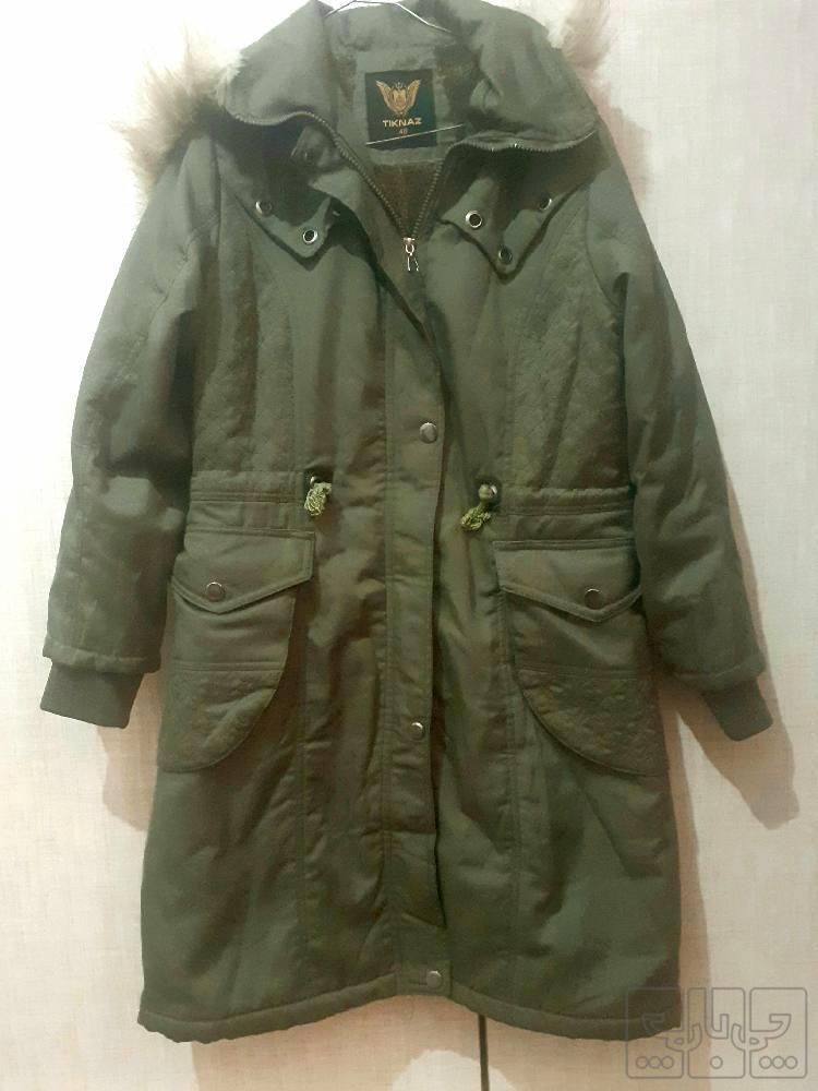 کاپشن زنانه داخل خز و کلاهدار سایز ۴۶ جنس کتان عالی و طرح دار، بلندی ۹۰ ، رنگ سبز سدری، بسیار گرم و ضخیم ، نو و تمیز ،