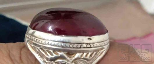 انگشتر نقره کار دست قدیمی با نگین یاقوت ضامن اهو