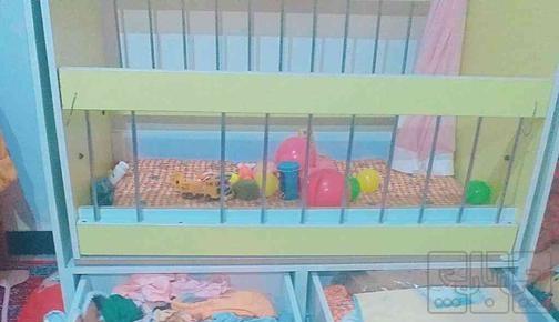 تختخواب کاملا سالمه گهوارش کار میکنه دوتا کشو واسه لباس بچه داره .حتی یک بارم بچم توش نخوابیده