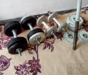 چهارعددوزنه2.5کیلویی دوعدد وزنه1کیلویی دوعدد دمبل2کیلویی دوعدد دمبل10کیلویی یک عدد هالتر10کیلویی