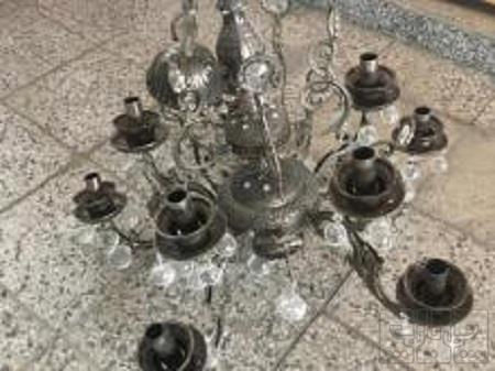 لوستر 8 شاخه برنجی کاملا سالم و بدون ایراد بدون کوچکترین خط و خش بالای 20 کیلو وزن داره جنس برنجی هستش