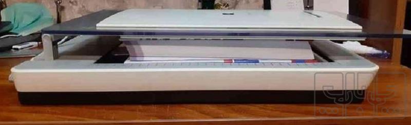 اسکنر مال خودم هست از اول تا الان دست خودم بوده الان 2 سال هست فلت انتقال تصویر اتصالی رنگ داره. تعمیر کار بردم ولی چون کلا 4 سانت از پایین صفحه رو ابی نشون میده من مشکلی باهاش نداشتم وازش استفاده میکنم.اداپتور هم دارد.