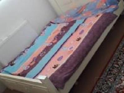 تخت سفید که زیاداستفاده نشده دوتازیره چوبی داره تشک وپاتختی نداره ساده وشیک