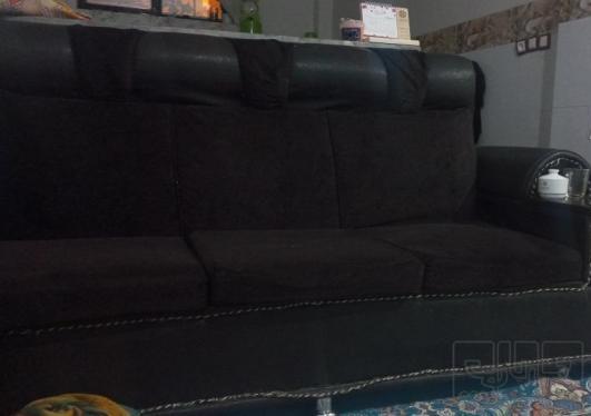 مبل راحتی 7نفره چرم ومخمل میزهاش به بغلشون چسبیده یه طرفش چرمش سوراخ شده