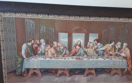 تابلو زیبا وهنری شام آخر به طول۱۵۵ وبه عرض۸۵ وبا دور قاب چوبی پهن وزیبا و محکم و استوار است
