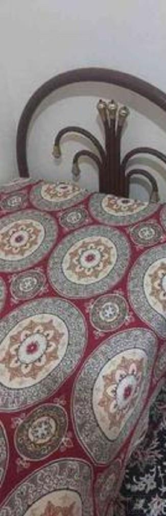 یک عدد تخت فلزی تک نفره به رنگ زرشکی هم راه تشک