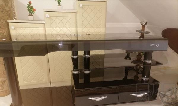 باسلام وقت بخیر میزتلویزیون ال ای دی تمام شیشه سفارشی 10میل جنس محکم سری اول درجه یک بازار ورق محکم دوکشوی ام دی اف زیبا جادار بزرگ داره