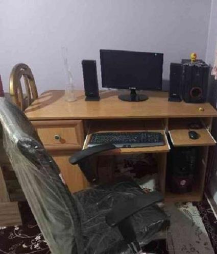 کامپیوتر خانگی کم کار با اسپیکر و میز و صندلی باهم